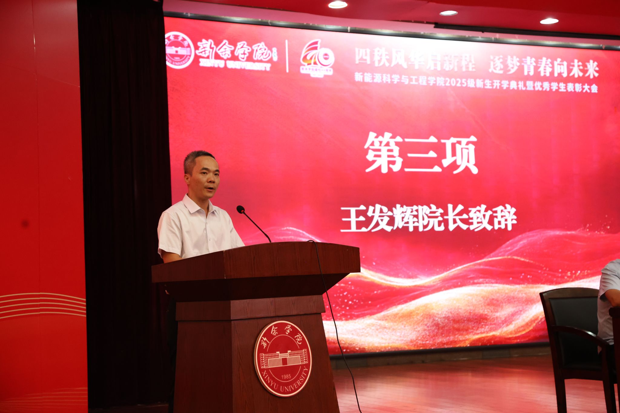 院长王发辉对2025级新生的到来表达热烈的欢迎和诚挚的祝贺,他以“传承、创新、担当”为关键词,回顾了学院的发展历程、学科特色和育人成果。他寄语新生,要成为“有情怀的工程师”,保持好奇、勇于实践、坚守初心,希望同学们在学院收获成长,成为推动能源革命的“关键力量”,书写新能源精彩篇章。