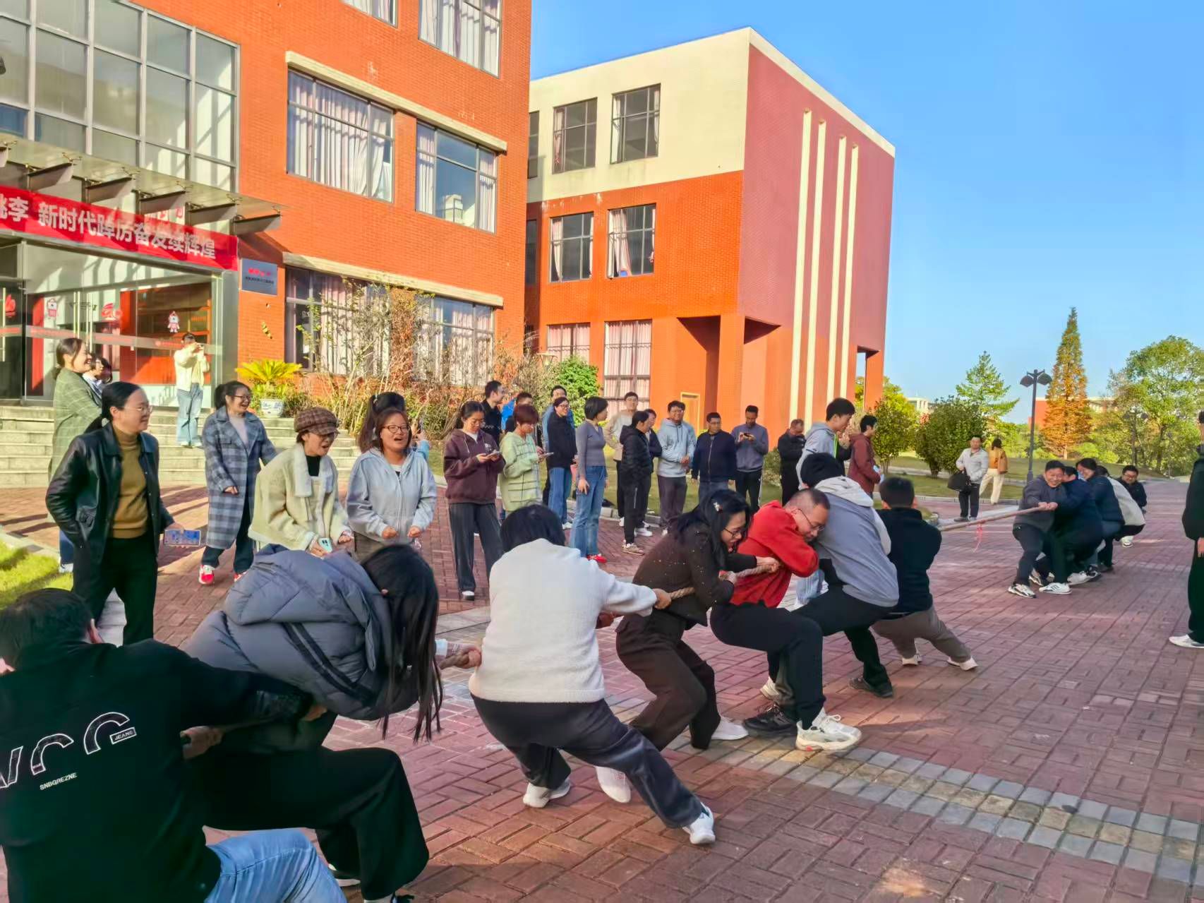 为丰富教职工业余文化生活,增强团队凝聚力与协作精神,营造积极向上的工作氛围,11月25日下午,yl7703永利集团分工会举办了“凝心聚力·拔出风采”为主题的拔河比赛。来自全院5个教研室的教职工代表队以饱满的热情投入比赛,展现了团结拼搏、奋勇争先的精神风貌,在冬日暖阳中展开了一场力量与团结的精彩较量。