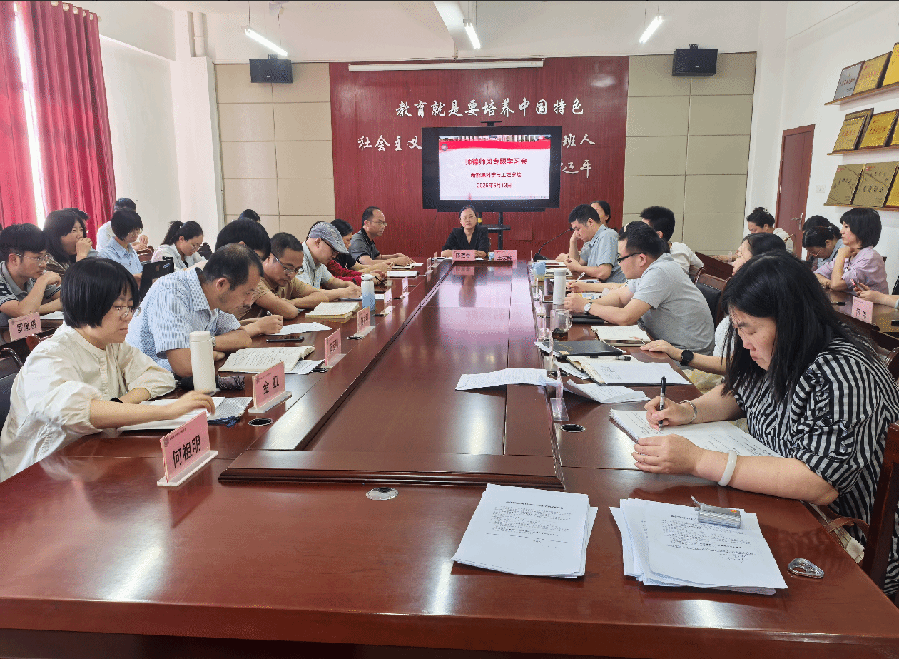 为进一步加强学院师德师风建设,提升教师职业道德水平,营造风清气正的教育教学环境,2025年5月13日,新能源科学与工程学院召开了师德师风专题学习会议。会议由学院党委书记陈莲香主持,全体教师参加会议。