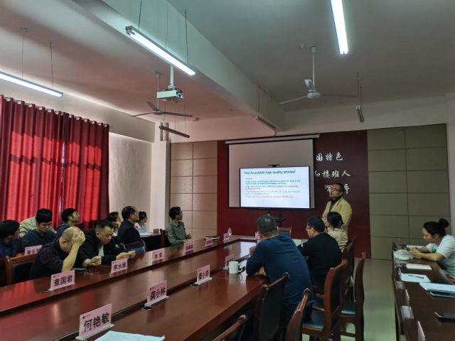 为贯彻落实易炼红同志在省委教育工作领导小组2022年第一次全体会议上的重要讲话精神,提高教师的科研论文写作能力,提升教师科研实力,5月3日下午,我院在理工楼C座202会议室举办了主题为“How to publish high quality articles?”的学术讲座。我院教师查国君副教授应邀作为主讲嘉宾,全院全体教师到场聆听。