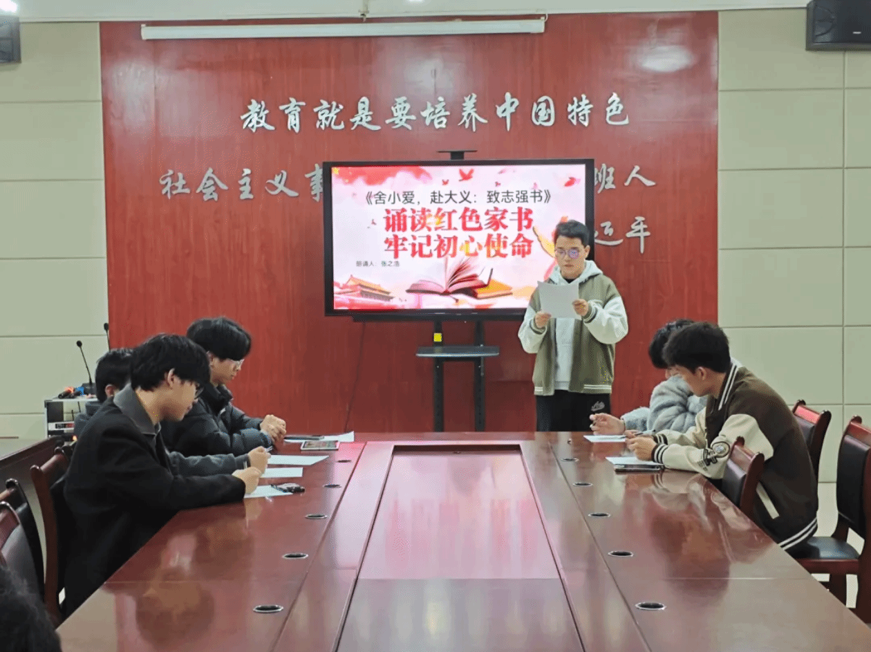 为深入学习贯彻习近平新时代中国特色社会主义思想,加强学院学生的思想政治教育,弘扬革命先辈的崇高精神,yl7703永利集团3月29日在会议室开展了“诵读红色家书,传承革命精神”活动。