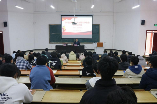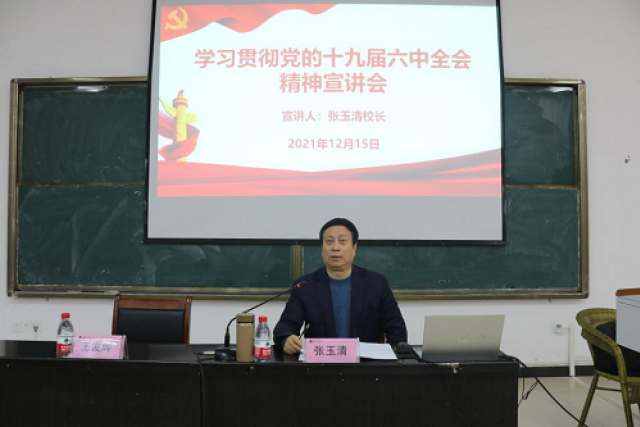 12月15日,校长张玉清在理工楼C座东面多媒体教室宣讲党的十九届六中全会精神,yl7703永利集团领导班子、教师代表和学生代表共计200余人聆听了宣讲报告。