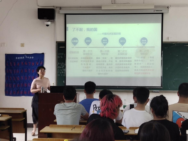 学生代表刘钰说:“听完课让我更深入地了解中国光伏发展历程,更加体会到光伏大国来之不易,作为光伏新青年,我一定要努力学习,自我增值,助力祖国的光伏事业发展,为2030年“碳达峰”、2060年“碳中和”的目标贡献一份力量。”