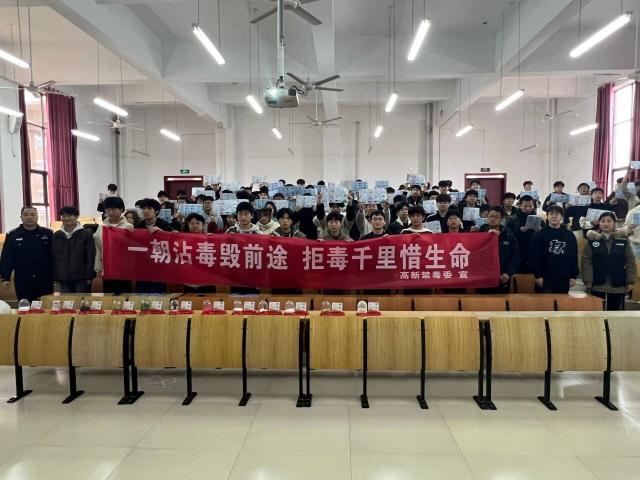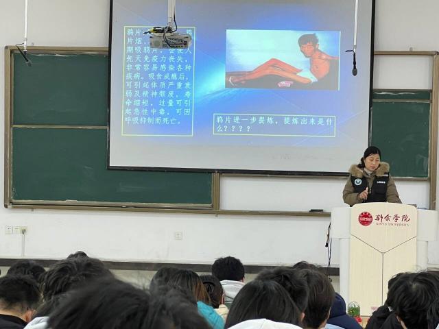 为增强学生安全防范意识,筑牢校园安全防线,3月11日下午,yl7703永利集团在理C阶梯教室成功举办“禁毒反诈宣传”主题讲座。本次活动特邀新余市高新公安分局禁毒大队民警刘警官、城东派出所驻yl7703永利集团社区民警周警官担任主讲人,共150余名师生参加。