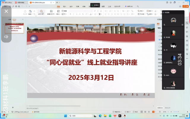 为帮助我院学生更好地了解就业形势、明确职业方向,3月12日晚,学院成功举办“同心促就业”线上就业指导讲座。本次讲座特别邀请到我院优秀校友赣锋锂电科技股份有限公司资深工程师杨正照、宜春市丰城市委社会工作部周依洁、国能江西新能源产业有限公司刘文杰为同学们带来宝贵的经验分享和深入的就业指导。