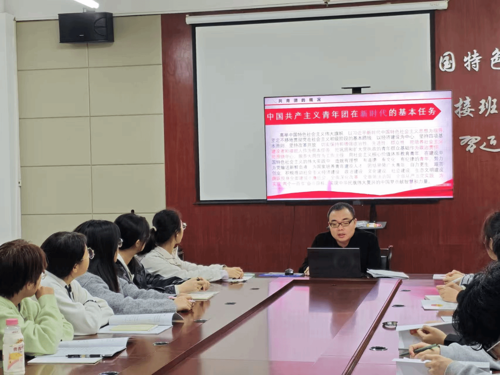 本次培训以“基础团务”为主题,团委负责人何老师从“共青团的概况”、“共青团的队伍建设”和“共青团的组织建设”三个方面入手,详细介绍了团旗、团徽、团歌等基本知识,深入讲解了团员发展、教育管理、团费收缴、“三会两制一课”制度落实、主题团日活动策划等内容,帮助团支书筑牢思想根基、掌握实务要领。