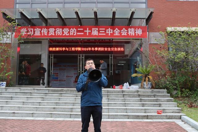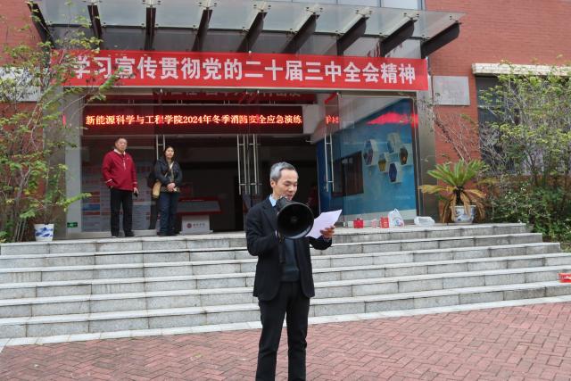 活动前,学院负责人王发辉进行动员讲话,强调此次消防演练的重要性和注意事项。他表示:此次“冬季消防应急演练”活动旨在提高大家的消防安全意识和自救互救能力,营造安全、稳定、和谐的校内环境。