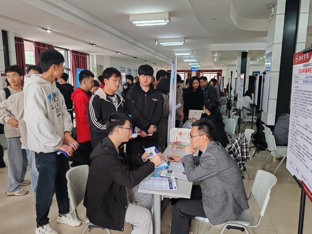 刘力恒深入招聘会现场,详细了解参会单位的岗位设置、用人需求、薪资待遇等情况,同时与前来应聘的毕业生亲切交谈,勉励毕业生要明确自身的定位,找准职业方向,树立正确的就业观,抓住春招就业关键期,积极踊跃投递简历,他要求学院要高度重视毕业生就业工作,周密部署,深入开展访企拓岗促就业活动,为学生高质量就业做好服务。