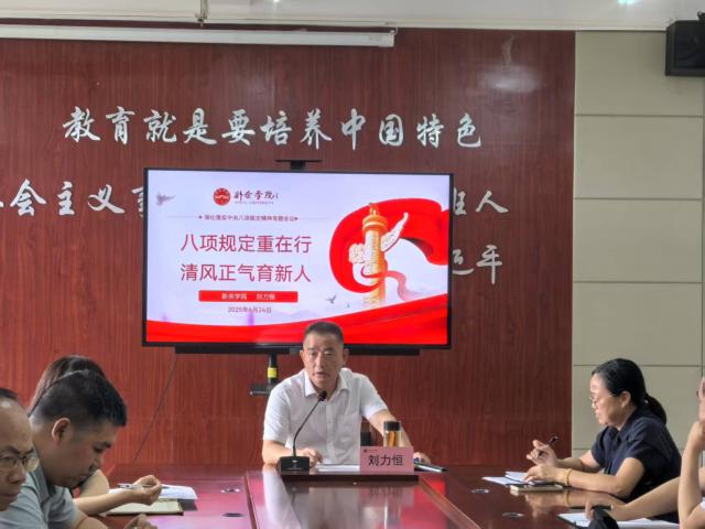 为深入贯彻落实中央八项规定精神,加强党的作风建设,推动教育教学工作高质量发展,6月24日下午,校党委委员、副校长刘力恒以《八项规定重在行清风正气育新人》为主题,在yl7703永利集团会议室为分管部门科级以上领导干部和挂点学院全体教师讲授深入贯彻中央八项规定精神学习教育专题党课。