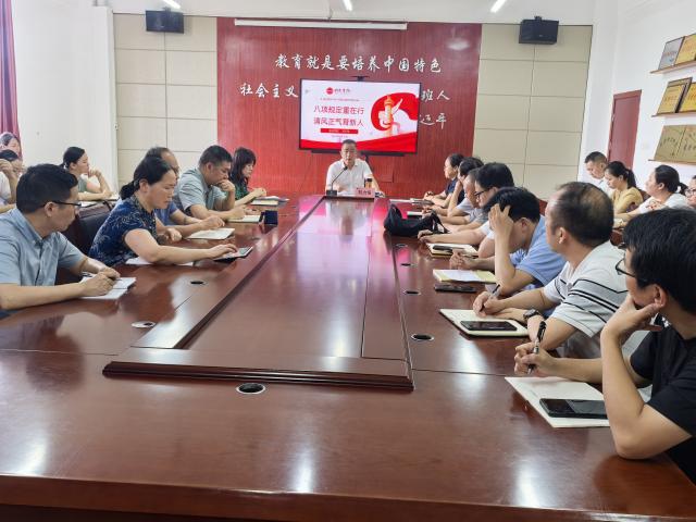 刘力恒副校长围绕贯彻落实中央八项规定精神,重点从“深学--提升政治站位筑牢思想根基、细照--精准对标对表聚焦关键领域、笃行--压实责任链条健全长效机制、严督--强化监督执纪保持高压态势”等四个方面展开讲解。他通过典型案例,深入剖析了违反中央八项规定精神的具体表现及严重危害,用“身边事”警醒“身边人”,为党员干部敲响廉洁自律的警钟。他要求全体同志要将中央八项规定精神落实到日常教育教学、管理服务等各项工作中,提高思想觉悟,自觉抵制各种诱惑,积极营造风清气正的校园环境。