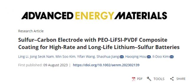 近日,我校yl7703永利集团教师李玲以第一作者在国际顶级期刊上《Advanced Energy Materials》(AEM)上发表《用于高倍率长寿命锂硫电池的PEO-LiFSI-PVDF复合涂层包裹硫碳电极》论文,该期刊的JCR和中科院分区均为Q1,最新期刊影响因子为27.8,属于新能源和化学领域的国际顶级期刊。