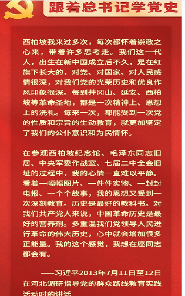 西柏坡是解放战争时期中央工委、中共中央和解放军总部的所在地。1947年5月,刘少奇、朱德率中央工委进驻西柏坡。1948年5月,毛泽东、周恩来、任弼时率中央前委和解放军总部到西柏坡与中央工委汇合。在这里,毛泽东和他的战友们召开了中国共产党全国土地会议,通过了《中国土地法大纲》,实现了“耕者有其田”;指挥了辽沈、淮海、平津三大战役,决定了中国的命运;召开了中国共产党七届二中全会,描绘了新中国宏伟的蓝图。1949年3月23日,中共中央和解放军总部离开西柏坡,赴京建国。新中国从这里走来。
