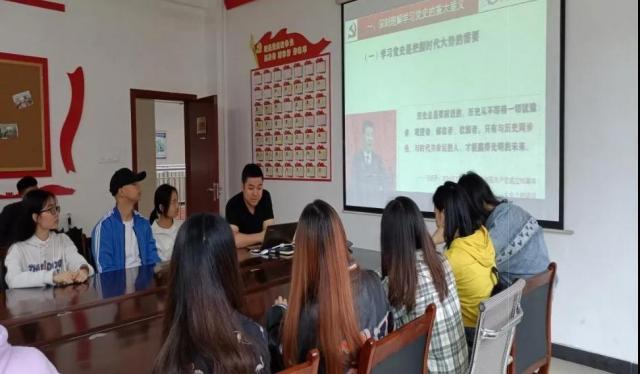 5月21日下午,学院党委委员欧阳昆在党员活动室为学生开展了题目为《深入学习党史、践行初心使命》的党史学习专题宣讲会。他围绕 一、为什么学党史:深刻理解学习党史的重大意义;二、党史学什么:准确把握党史学习的主要内容;三、学党史干什么:学习党史、践行初心使命这三个方面内容进行详细讲解。
