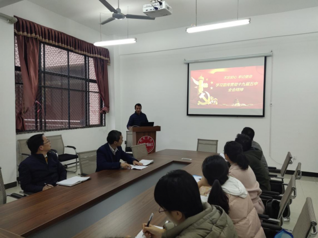 10月24日下午,yl7703永利集团教工第二党支部李云明同志为支部党员讲“学习宣传贯彻十九届五中全会精神”主题党课。