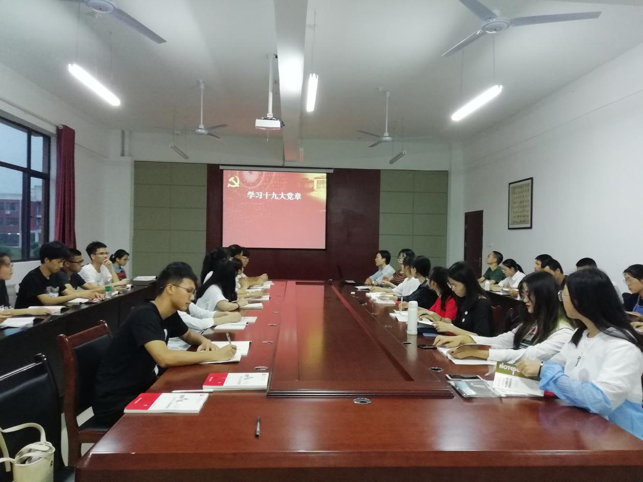 5月19日晚上,由教工第一支部组织委员廖肇禄同志解读了十九大会议精神和习近平新时代中国特色社会主义思想。在讲解过程中,他旁征博引,各位入党积极分子都非常投入。他强调了:党的十九大创立了习近平新时代中国特色社会主义思想,宣布中国特色社会主义进入新时代。新思想引领新时代,新使命开启新征程。