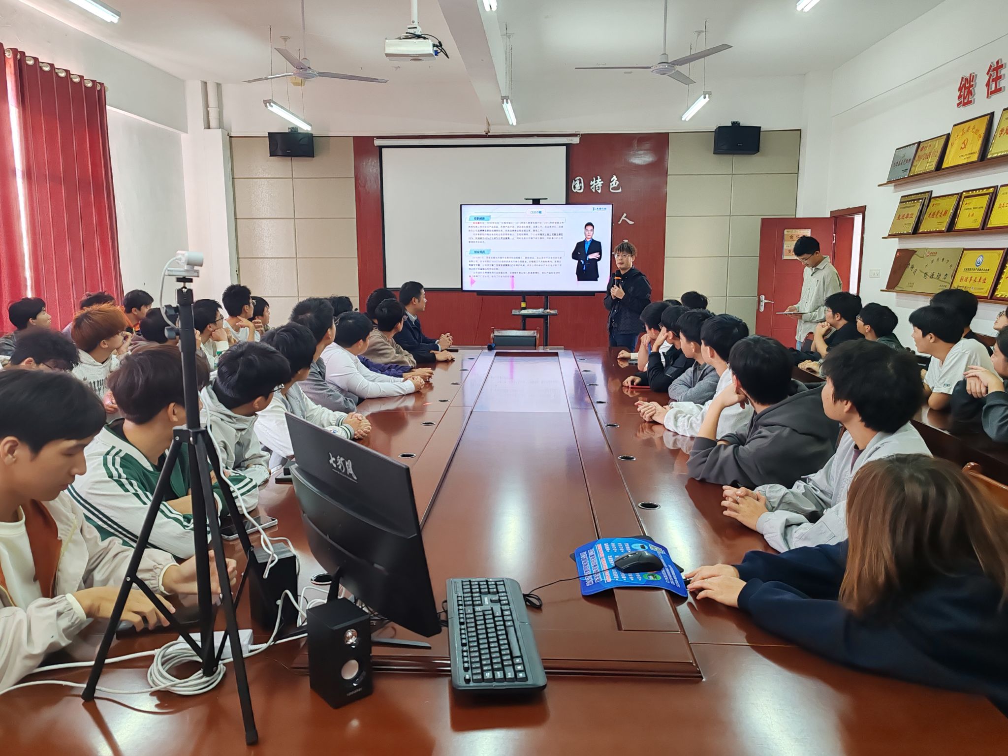 吴志鹏校友结合自身从学生到职场精英,再到成功创业者的多重身份转变,生动讲述了他在跨境电商领域的拼搏故事。2014年步入行业,他凭借出色的能力迅速晋升;2018年,他把握时代机遇,毅然创业,创立深圳市杰奇科技创新有限公司,并在短短数年内将企业打造为行业佼佼者。他以“蜕变”、“责任”、“拼搏”和“激情”为关键词,分享了自己的创业历程,并深情寄语学弟学妹:“校园不是避风港,而是梦想起航的地方;没有天生的成功,只有拼出来的机会,干出来的未来。”