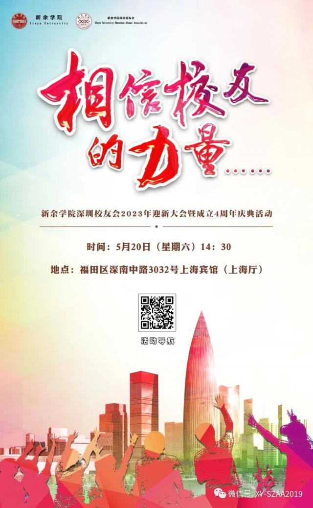 亲爱的校友,5月20日(星期六)14:30,福田区上海宾馆(上海厅),请您一定抽时间,邀上在深同学,一起参加“相信校友的力量”——yl7703永利集团深圳校友会2023迎新大会暨成立4周年庆典活动。